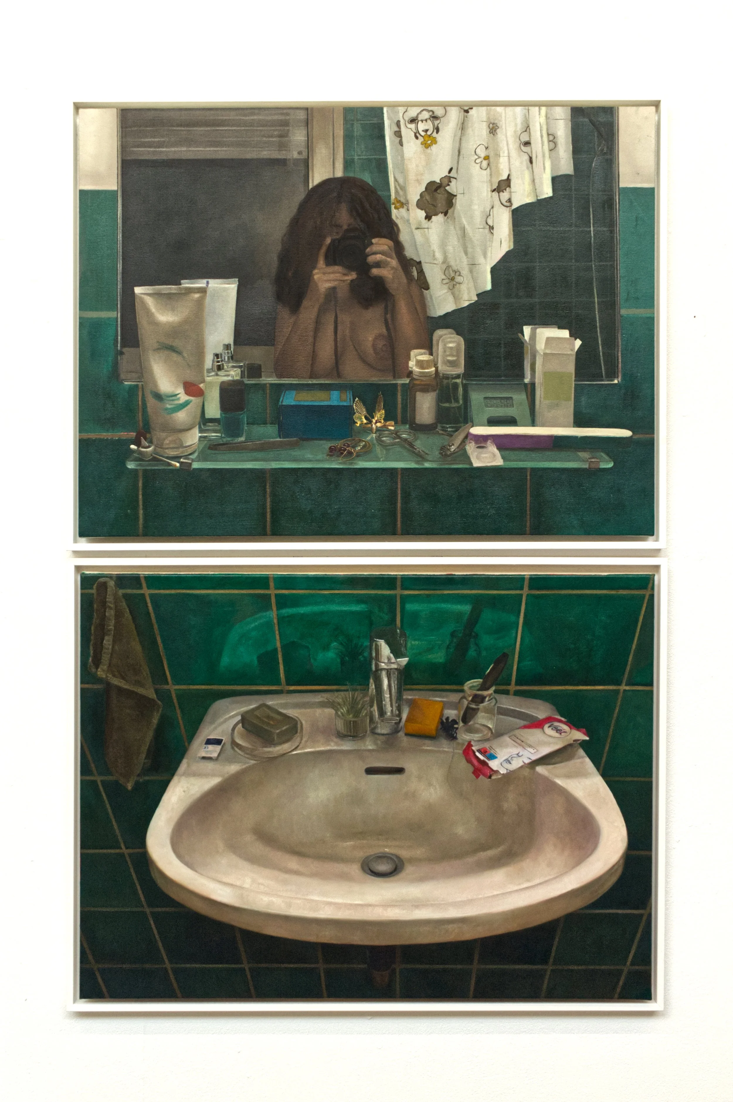 Espejo sin lavabo & Lavabo sin espejo, Öl auf Leinwand, je 80 cm x 60 cm, 2025