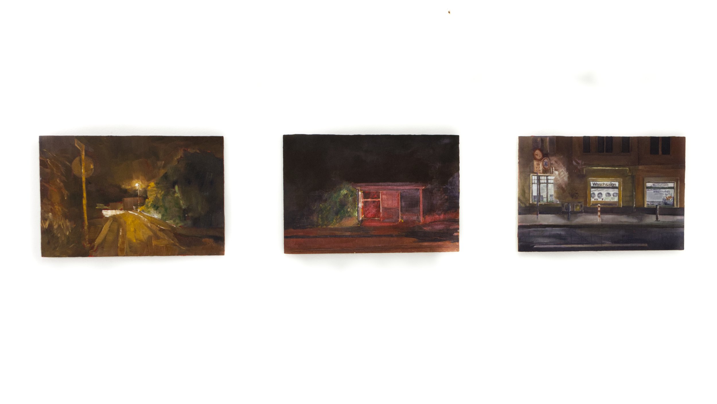 Ein kleines Nachtstück I - III, Öl auf Leinwand, je 20 x 30 cm, 2023