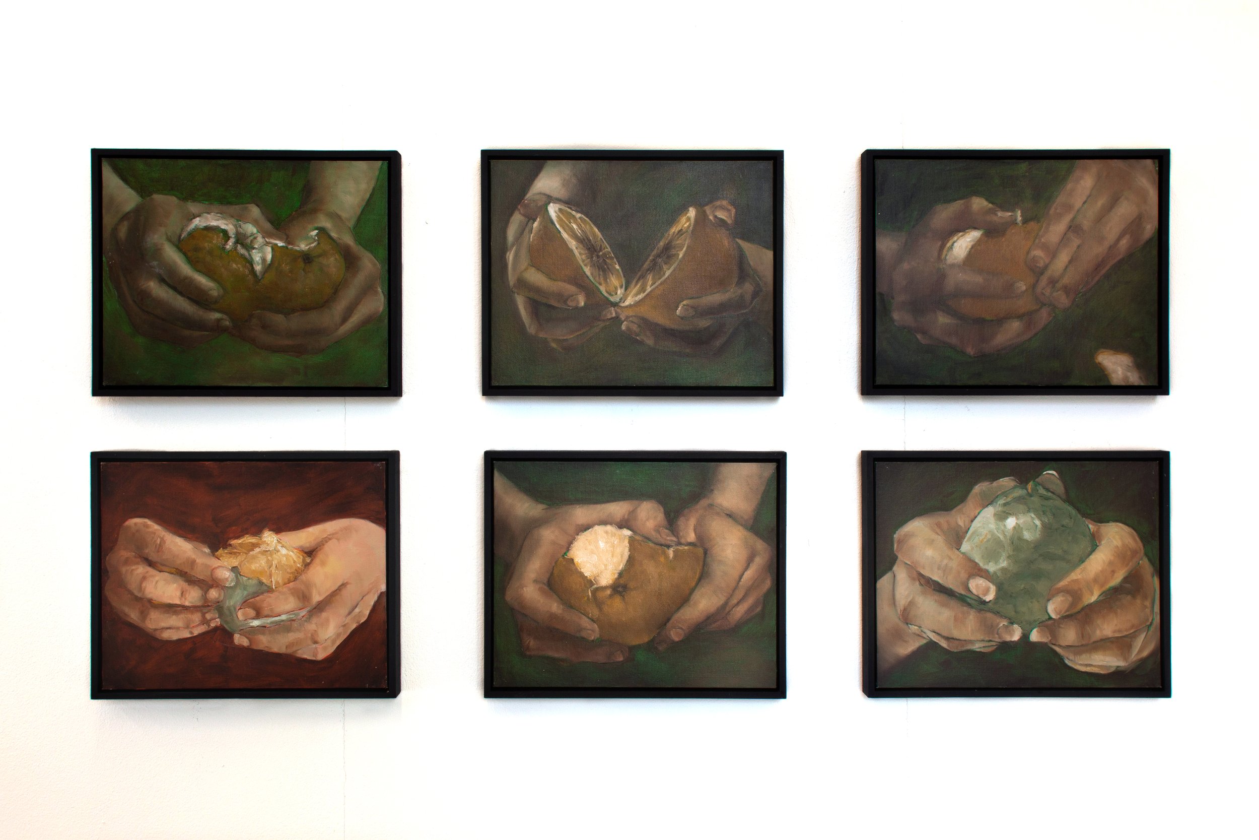 malum aureum I - VI, Öl auf Malplatte, je 24 x 30 cm, 2022
